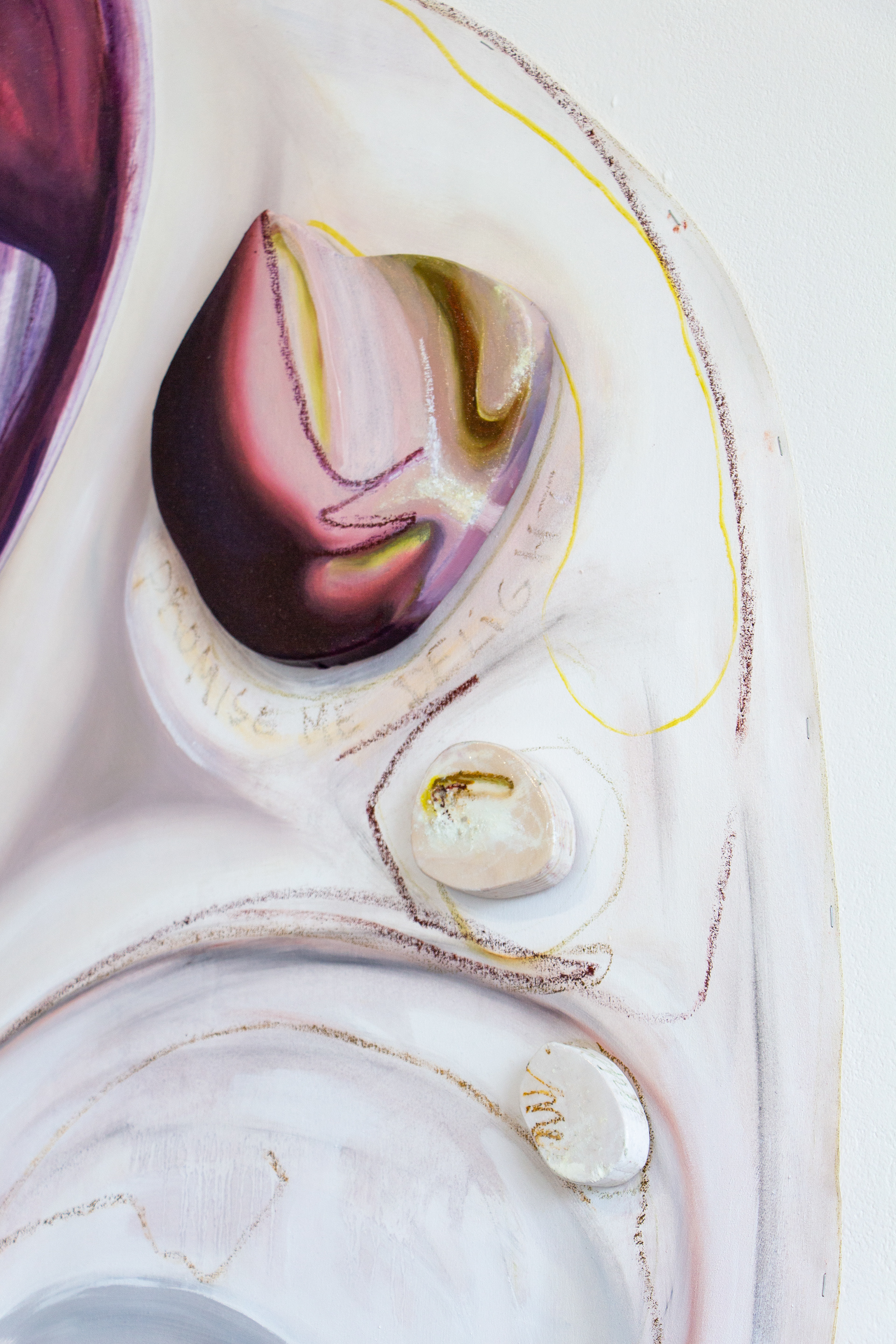 2023, Oil on canvas, wood, foil, exhibition view Santa Maria Paraffina, MOM Art Space, Hamburg