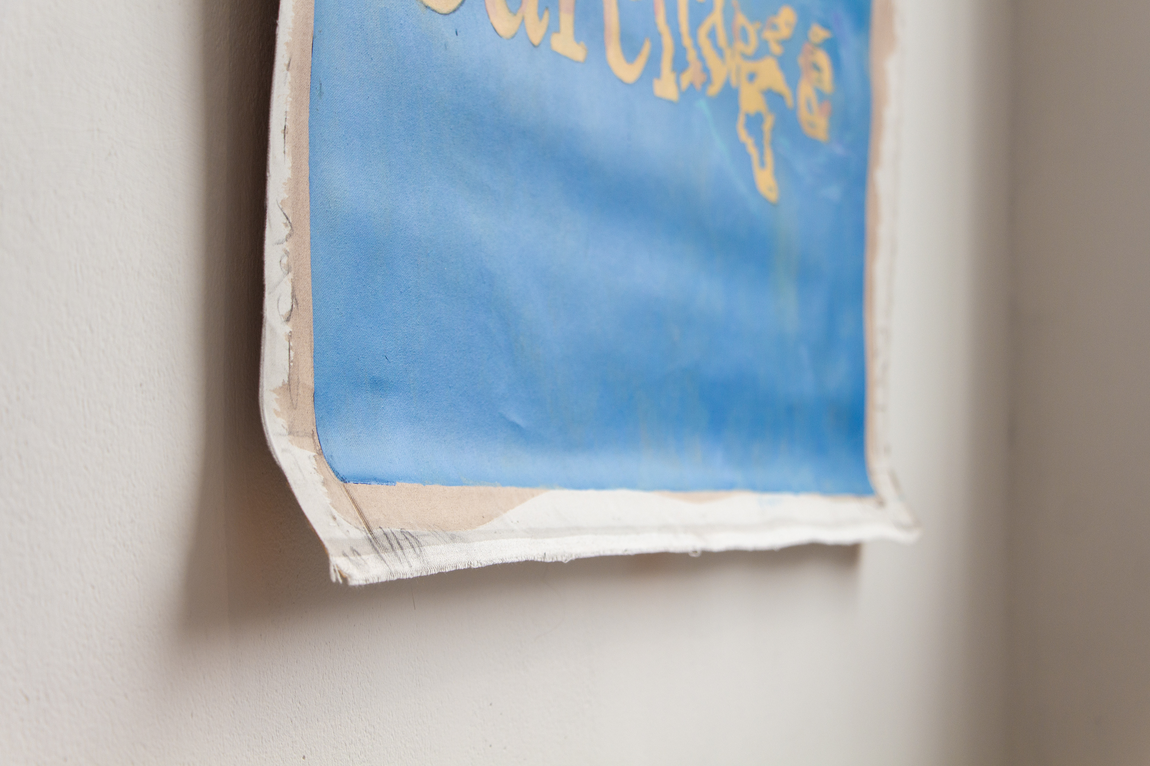 Using this collective alter ego, Felisha Carénage, Luiza Furtado and Anne Meerpohl revel in the absurdly feminine and demonic tropes of womanhood occurring in the seaside spaces into which they were born. Their third iteration of the Maria exhibition finds each of the painters in a typical river-split European city – Hamburg, Vienna, Berlin. For Santa María Paraffina they are navigating their current continent outwards – back to Florianopolis, Eckernförde and San Fernando. Playing with regulations that govern painting, performance and textiles, they muddy their own María iconography, rudely distorting the mirrors of her surface, rowing ripples into rivulets; sputtering liquid futures.