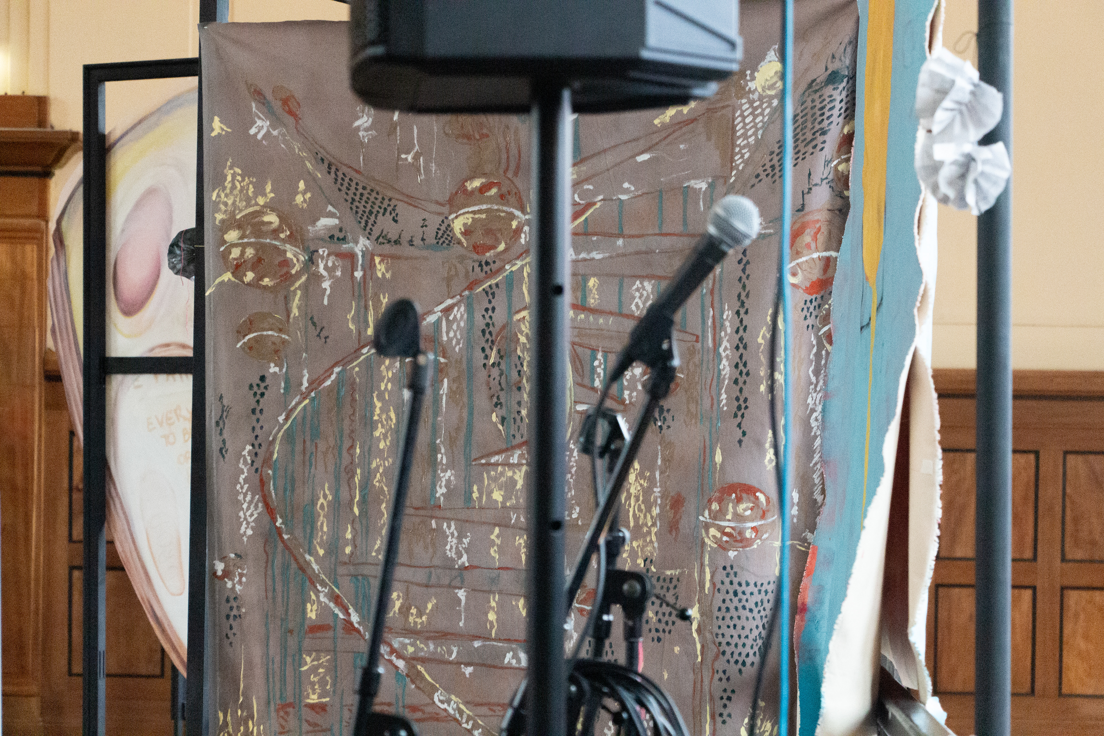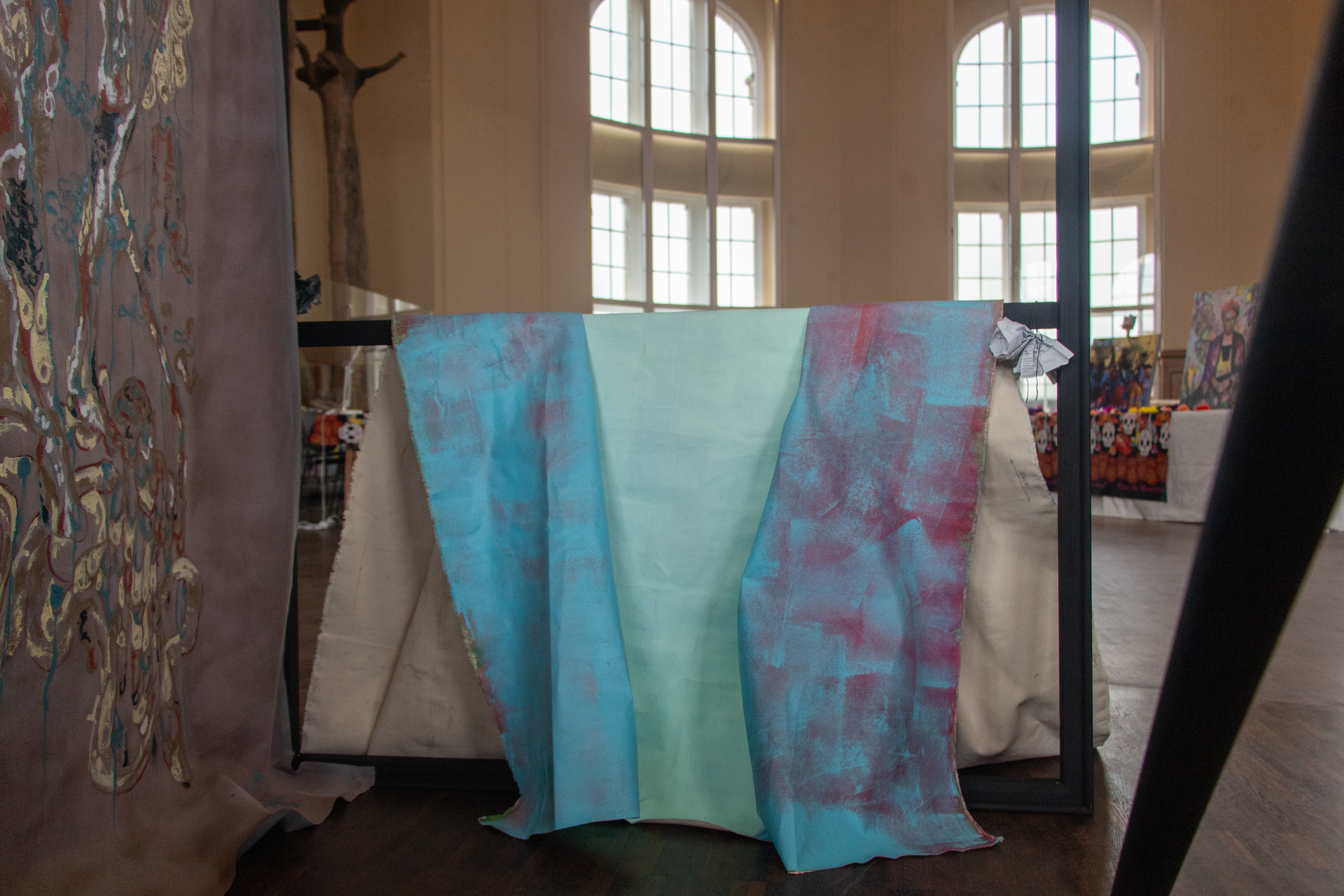 As part of the INDEX festival, for the exhibition’s finissage event on the 31st of May, Felisha, Luiza and Anne present Surge – a performance which activates their painterly installations.